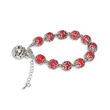 8-Inch Silver Red Coral Lantern Bead Link Bracelet Chain Jewellery
