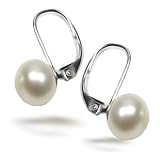 Luminous white pearl earrings are so Fifties Classy that they have never gone out of style. Our Sterling Silver Freshwater Pearl Leverback Earrings 8mm have the weight, feel and shine of a real Tahitian pearl. Made of 100 percent genuine oyster shell, these leverback earrings will turn eyes wherever you roam. A fabulous present for any woman who loves to add a mix of classic with her totally up-to-date wardrobe. Buy these pearl earrings for bridal jewelry that will complement a drop-dead effort