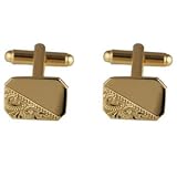 Hard Gold plated swivel cufflinks, rectangular with the corners trimmed. Half of each link is hand engraved diagonally with a traditional ornamental pattern leaving a plain area suitable for engraving with a few initials. Made in Birmingham, England, hand polished the cufflinks come carefully prepared in a black leatherette gift box. Please note that weights can vary with handmade or hand polished products, this is an average weight that we would expect the item to weigh.