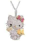 Celebrate your lifestyle with this absolutely adorable shimmering Hello Kitty angel necklace featuring a shiny pink bow on her head. This sparkly necklace is custom made and complemented with a great assortment of CZ Diamonds. More styles, colors, sparkle and inventive designs at Glam and Gloria!