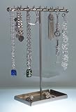 (JTE-Satin Nickel Silver) Necklace Holder Bracelet Rack Jewelry Organizer - Hook or Hoop Earring Storage Rack - Closet Jewelry Display Stand - Vanity Accessory - Angelynn's Jewelry Tree E