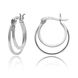 Sterling Silver Tarnish-Free Small Double Hoop Earrings (0.7" Diameter)