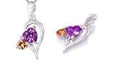 Gemstones Total carat weight 0.50 Genuine Amethyst, 1 pc, Heart Cut 5.00mm Genuine Citrine, 1 pc, Round Cut 3.00mm vibrant color clean clarity Pendant pure sterling silver with .925 stamp 0.91 grams Length from bail to bottom: 3/4 inch Includes 18 inches Silver Chain modern design featuring prong setting includes a gift pouch . Excellent Craftsmanship. Unique one of a Kind Design. Includes Free Gift Box & Free 18 inch Silver Box Chain